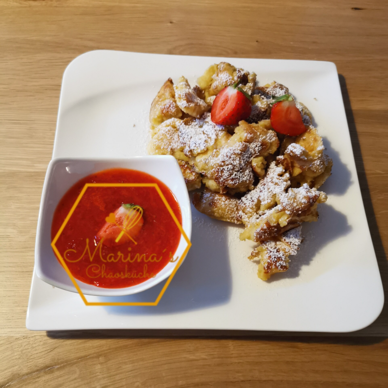 Heute gibt's einen Kaiserschmarrn mit Erdbeersauce von mir. Sehr lecker in der Erdbeersaison.